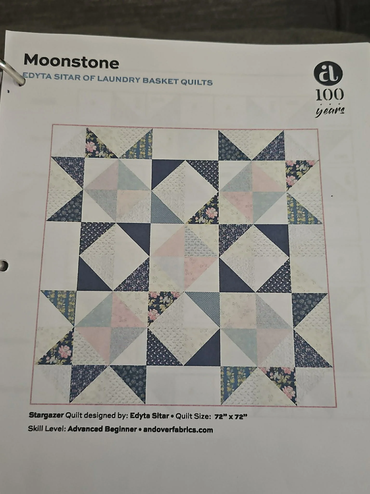 Here is her chosen quilt pattern. Great starter pattern that is not overly difficult but requires a lot of practice on precision to get the corners and points aligned.